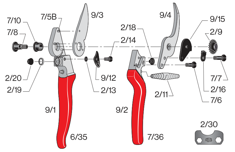 Prestazioni e caratteristiche ergonomiche superiori sono evidenti da subito quando si osservano le singole caratteristiche di FELCO 9. Queste cesoie per potatura consentono di ottimizzare la vostra azione ad ogni taglio, offrendo i massimi livelli di efficienza in ogni ambiente di potatura e, al tempo stesso, un comfort eccezionale. La testa di taglio inclinata e gli ammortizzatori in gomma, che allentano la tensione sui polsi, rendono qualsiasi operazione di potatura un gioco da ragazzi. Non potrete più fare a meno della chiusura delicata, solo per il gusto di utilizzarla. Tuttavia, non dimenticate di utilizzare il meccanismo di regolazione di precisione per regolare facilmente e con precisione la testa di taglio per garantire sempre una potatura precisa e netta.